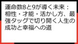 運命数3の女性は、そのクリエイティビティとユーモアセンスを活かして、多くの人々に喜びと笑顔をもたらすことができます。 彼女たちの才能は、仕事やプライベートにおいて、大きな強みとなるでしょう。 彼女たちが自分らしく輝き、周囲の人々を幸せにする姿は、多くの人々にとって希望の光となるはずです。
