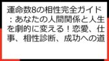 この記事は、数秘術における運命数3を持つ女性のあなた、またはあなたの周りにいる運命数3の女性について、深く理解するためのガイドです。 運命数3の女性が持つ独特の魅力、才能、恋愛傾向、そして成功への道を、数秘術の視点から紐解きます。 あなたの内なる可能性を最大限に引き出し、より充実した人生を送るためのヒントが満載です。 さあ、運命数3の女性が輝くための旅を始めましょう。