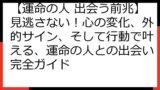 「運命の人と出会いたいけれど、なかなか出会えない」「付き合うまでに時間がかかる」と感じているあなたへ、このFAQ集は、そんなあなたの疑問を解決し、運命の人との関係を育むためのヒントをまとめたものです。