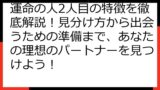これにより、運命の人を見つけるためのヒントを得ることができ、より効果的な恋愛戦略を立てることが可能になります。
