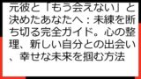 さらに、関係修復を望む場合の具体的なアプローチから、次へ進むための心の整理まで、具体的なステップを提示します。