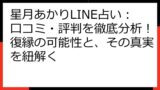 この記事を読めば、星月あかりLINE占いを安心して利用するための情報が手に入り、あなたの復縁への道がより明確になるでしょう。