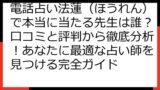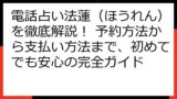 この記事を読めば、電話占い法蓮(ほうれん)を賢く利用し、あなたの悩みを解決するための一歩を踏み出せるはずです。