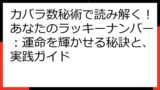 この記事では、「カバラ数秘術 6」に焦点を当て、その意味、特徴、人間関係、キャリア、そしてスピリチュアルな成長について、深く掘り下げて解説します。