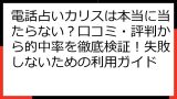 - 電話占いカリス 当たる先生の見つけ方:利用者の疑問を徹底解決!【FAQ】