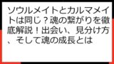 ソウルメイトとの違いを比較しながら、カルマメイト特有の性質を明らかにしていきます。