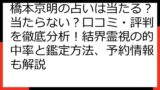 「ラスト陰陽師」として知られる橋本京明先生の占いは、その的中率の高さで多くの人々を魅了しています。