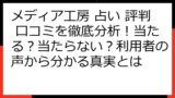この記事では、メディア工房の占いの実態を徹底的に調査し、その内容、特徴、ユーザー評価を詳しく解説します。