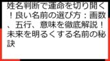 このFAQ記事では、「姓名判断 結婚後 ゲッターズ」というキーワードで検索されている皆様の疑問にお答えします。