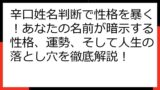 このセクションでは、姓名判断によって、あなたが結婚後にどのような宿命を背負うのかを明らかにします。