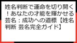 さあ、あなたも名前の持つ力を理解し、より良い未来への一歩を踏み出しましょう。