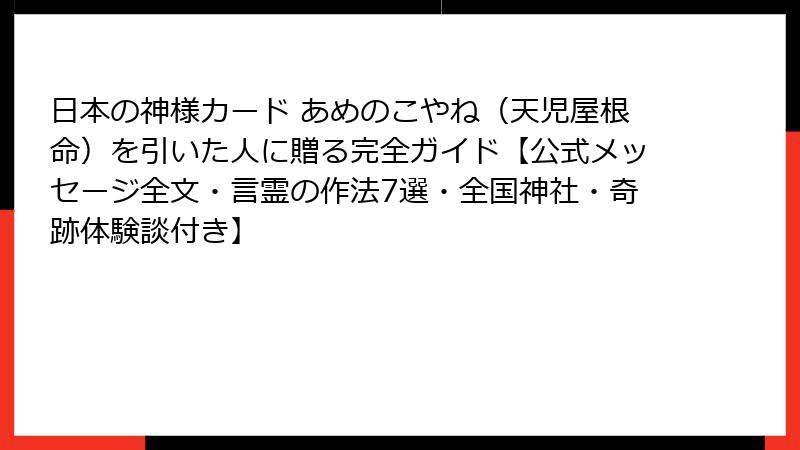- 日本の神様カード公式・天児屋根命のメッセージ全文と深掘り解釈