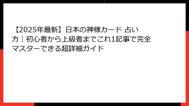 - 日本の神様カードとは?基本知識と魅力がわかる5分で読める概要