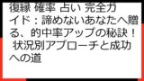 焦らず、一つ一つのステップをクリアしていくことで、復縁への道が開かれます。