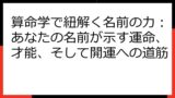 この記事を読めば、算命学の奥深さを知り、あなたの人生をより豊かにするためのヒントを得ることができるでしょう。