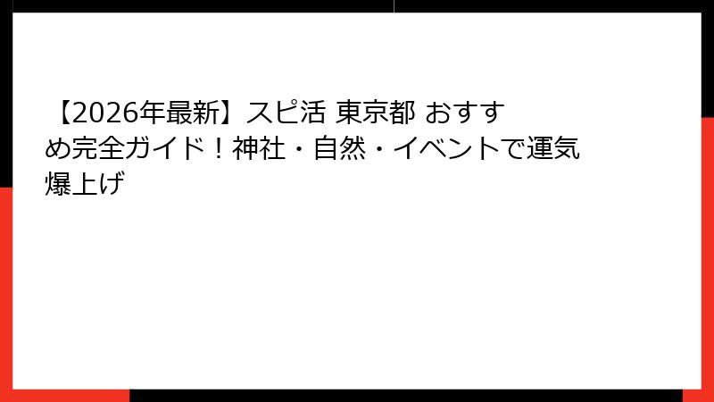 - スピ活 東京都 おすすめの始め方・効果最大化Tipsとまとめ