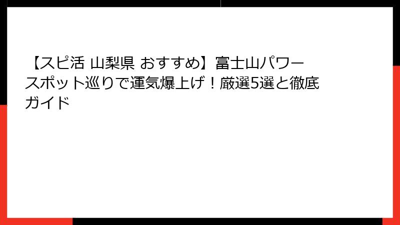 実際、多くの人が「スピ活 山梨県 おすすめ」で検索し、週末旅行を計画しています。