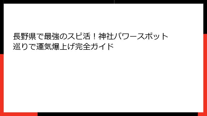 スピ活 長野県 神社を通じて、運気アップと心の豊かさを手に入れましょう。