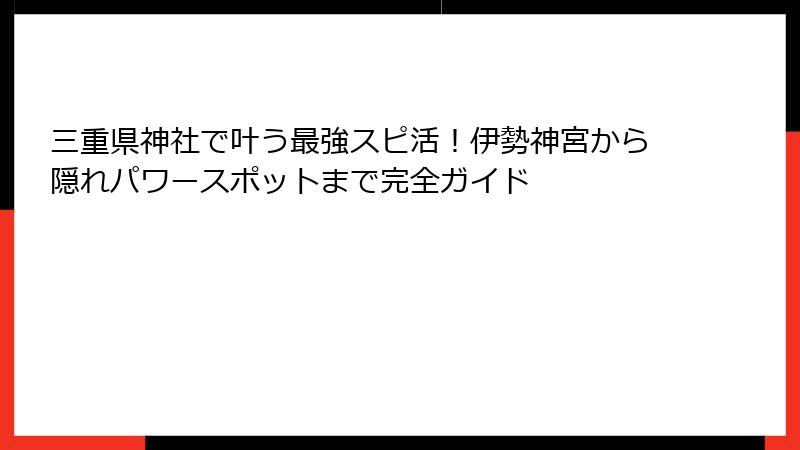 - 三重県神社で効果的にスピ活するコツとマナー・実践ガイド