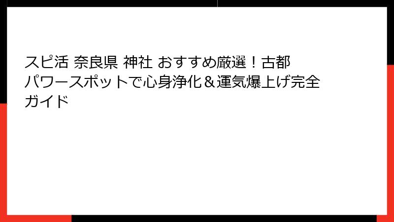 - スピ活 奈良県 神社 巡りのコツ!効果を最大化する参拝マナーと実践ポイント