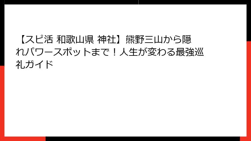 【スピ活 和歌山県 神社】熊野三山から隠れパワースポットまで!人生が変わる最強巡礼ガイド