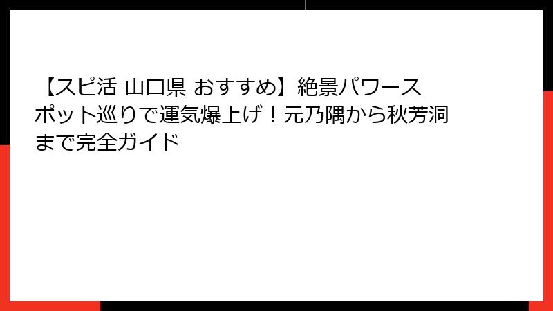 近年、SNSで「スピ活 山口県 おすすめ」といったキーワードが頻繁に検索されるようになり、多くの人が山口県の隠れたパワースポットを求めています。