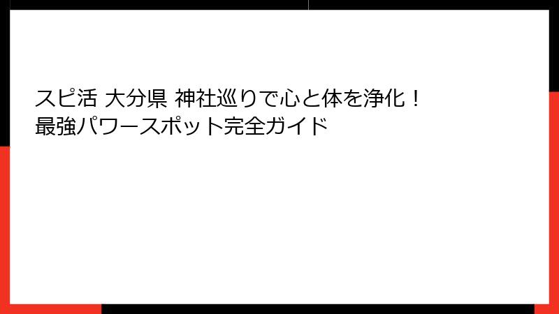 まずは、スピ活の基本から始め、大分県がなぜ最適な場所かを解説し、具体的な神社巡りの楽しみ方を紹介します。