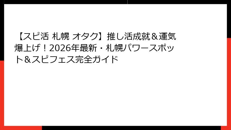 特に札幌のような自然豊かな都市で暮らすオタクにとって、スピ活は単なるトレンドではなく、生活の質を根本から変える強力なツールとなります。