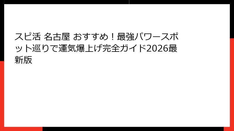 この記事では、2026年最新の情報をもとに、スピ活 名古屋 おすすめのスポットを詳しく紹介し、初心者から上級者まで楽しめるガイドを提供します。