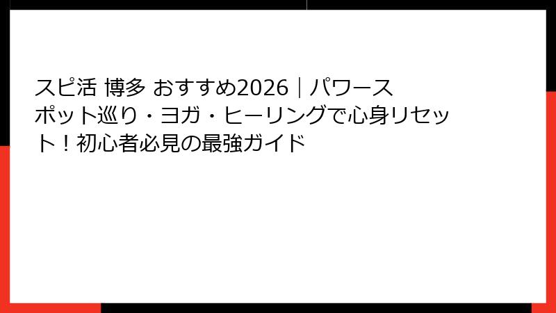 スピ活 博多 おすすめ2026|パワースポット巡り・ヨガ・ヒーリングで心身リセット!初心者必見の最強ガイド