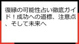 さらに、もし復縁が難しいと判断された場合でも、前を向いて幸せな未来を築くための具体的な方法についても提案します。