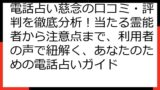 • 明朗会計: 明朗会計で、安心して利用できる電話占いサービスです。」