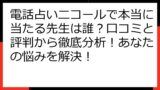 賢く利用して、お得に電話占いニコールの鑑定を体験するための情報が満載です。