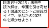 このように、干支と五行の組み合わせから、年ごとの運勢を詳細に読み解き、個人の運勢への影響を理解し、具体的な対策を講じることができます。