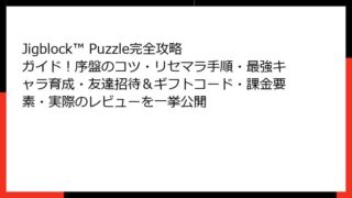 カジュアル Jigblock™ Puzzle完全攻略ガイド!序盤のコツ・リセマラ手順・最強キャラ育成・友達招待&ギフトコード・課金要素・実際のレビューを一挙公開