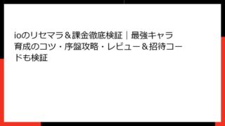 アクション ioのリセマラ&課金徹底検証|最強キャラ育成のコツ・序盤攻略・レビュー&招待コードも検証