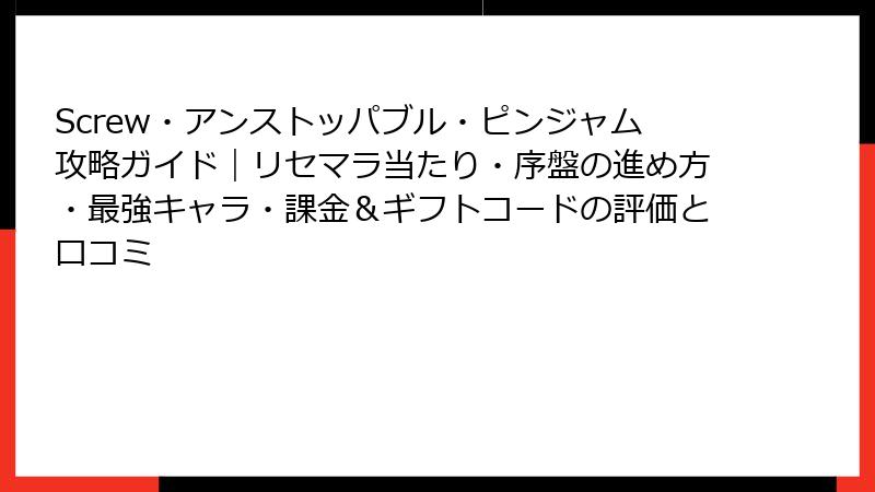Screw・アンストッパブル・ピンジャム:リセマラと最強要素の深掘りガイド