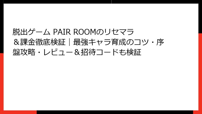 脱出ゲーム PAIR ROOMのリセマラ&課金徹底検証|最強キャラ育成のコツ・序盤攻略・レビュー&招待コードも検証