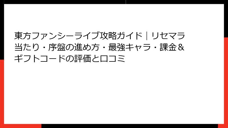 こんにちは、音ゲーブロガーの皆さん! 前回の記事で「東方ファンシーライブ」の基本概要と攻略ポイントをお届けしましたが、今回はさらに踏み込んで、リセマラ要素の有無とその手法、そして「最強」と目されるキャラやカードについて詳しく解説します。このゲームはシンプルなリズムアクションが魅力ですが、ガチャやキャラ要素が絡むと一気に熱が入りますよね。東方ファンならではのワクワクを最大化するための情報満載でお届け! 無課金勢も安心の視点でまとめましたので、ゆっくりお読みください♪