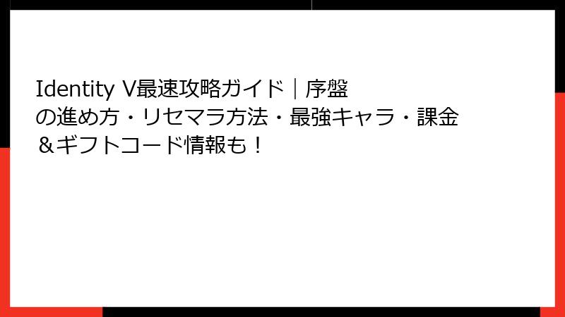 Identity V(第五人格)は、非対称対戦の醍醐味を詰め込んだ人気スマホゲームですが、ガチャやリセマラの噂を耳にすることがあります。本記事では、リセマラ要素の有無とその手法、そして「最強」と評されるサバイバーやハンターの詳細を深掘りします。2025年現在の環境を基に、初心者から上級者まで役立つ情報をまとめました。ゲームを効率的に進めるための参考にどうぞ!