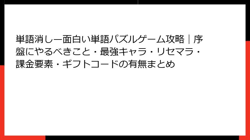 単語消し—面白い単語パズルゲーム攻略|序盤にやるべきこと・最強キャラ・リセマラ・課金要素・ギフトコードの有無まとめ