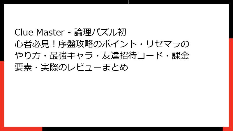 Clue Master – 論理パズル初心者必見!序盤攻略のポイント・リセマラのやり方・最強キャラ・友達招待コード・課金要素・実際のレビューまとめ