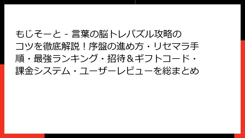 もじそーと – 言葉の脳トレパズル:リセマラや最強要素を徹底解剖! 脳トレの意外な深みにハマる?