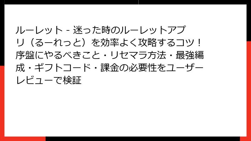 ルーレット – 迷った時のルーレットアプリ(るーれっと) リセマラと最強要素の深掘りガイド
