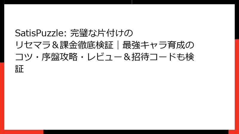 SatisPuzzle: 完璧な片付け - リセマラと最強要素の深掘りガイド