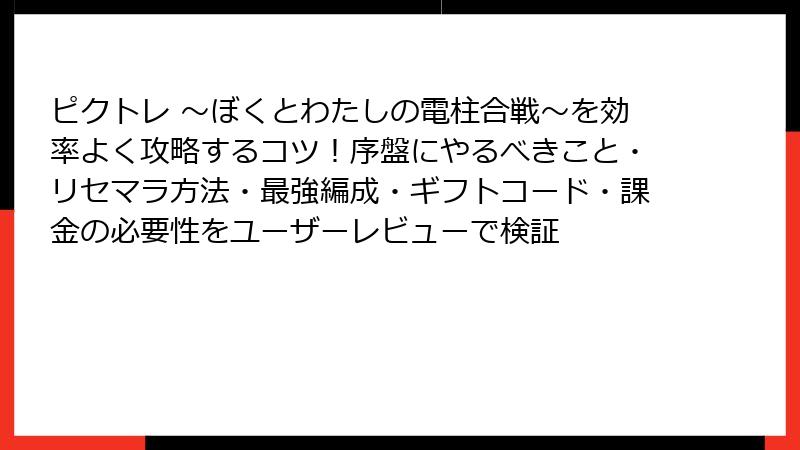 ピクトレ 〜ぼくとわたしの電柱合戦〜 リセマラ&最強要素完全ガイド:ガチャなしのリアルバトルで勝つ方法