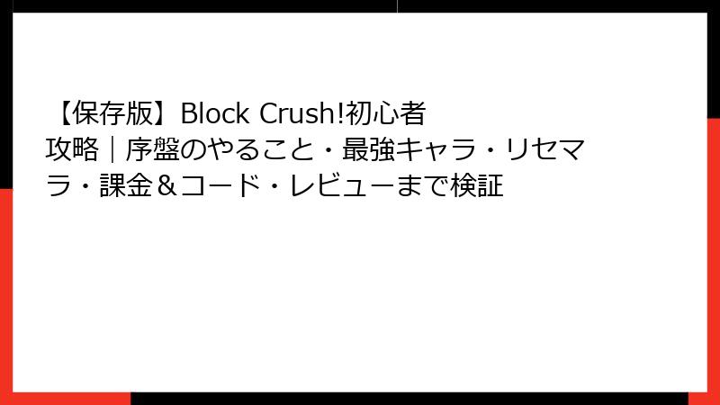 これらを実践すれば、平均スコアが1.5倍以上に。リセマラはオプションですが、アイテム中心のプレイでBlock Crush! の真価を発揮しましょう。