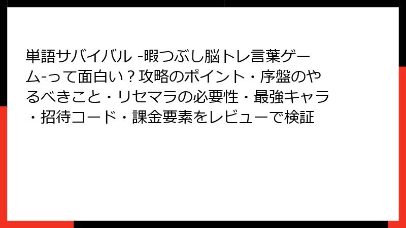 単語サバイバル -暇つぶし脳トレ言葉ゲーム- のリセマラと最強要素を深掘り! ガチャなしの純粋脳トレを極める