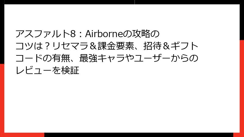 『アスファルト8:Airborne』のレビュー・口コミ・評判は、グラフィックとアクションの魅力が圧倒的に勝り、2025年でも「名作」の地位をキープ。高評価9割の爽快レーシングですが、課金と難易度の壁をクリアする戦略が鍵です。無課金でじっくり楽しむもよし、微課金でブーストするもよし。あなたはどうプレイしますか? コメントであなたの評判をシェアしてください! 次回はAsphalt 9との比較かも? それでは、トラックで爆走を!