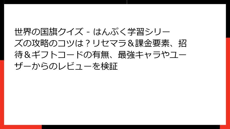世界の国旗クイズ – はんぷく学習シリーズ:リセマラと最強要素の深掘りガイド